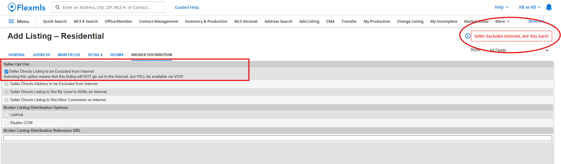 If, at the direction of your client, you are instructed to delay the marketing of a property on IDX/internet syndication, when inputting the listing, you will need to check the box/button labeled: